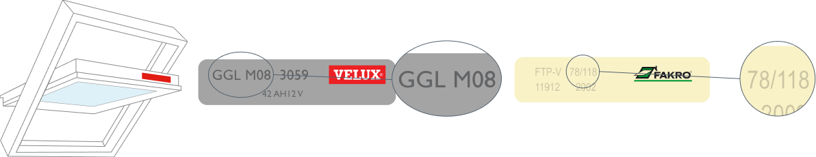 Every VELUX ®, Fakro, Dakstra and Rooflite roof window carries a data plate that details the code of the window. Check your window's code number and simply select that when ordering your blind.